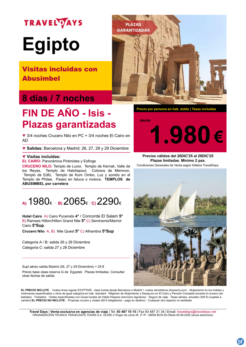 Fin de Año en Egipto - 8 días -Salidas 26,27,28 y 29 de diciembre desde BCN/MAD a partir de 1.980€