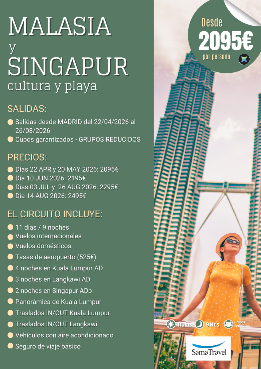 "Malasia y Singapur": Circuito 11 días visitas y playa (APR-AUG) [Cupos y precios Garantizados] *Desde 2.095€*