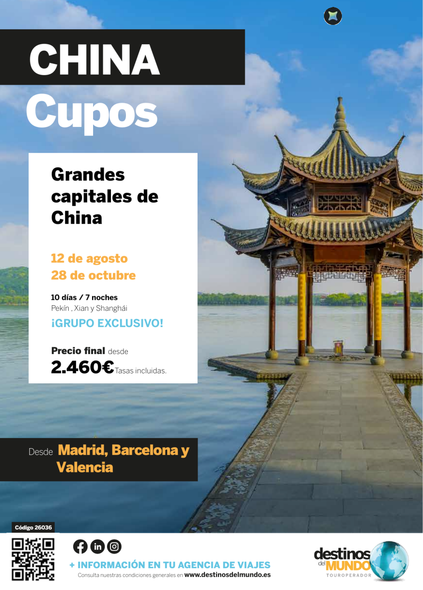 🇨🇳🏙️Grandes capitales de China CUPOS VERANO origen: Madrid, Valencia y Barcelona 10 d / 7 n desde 2.460€🏙️